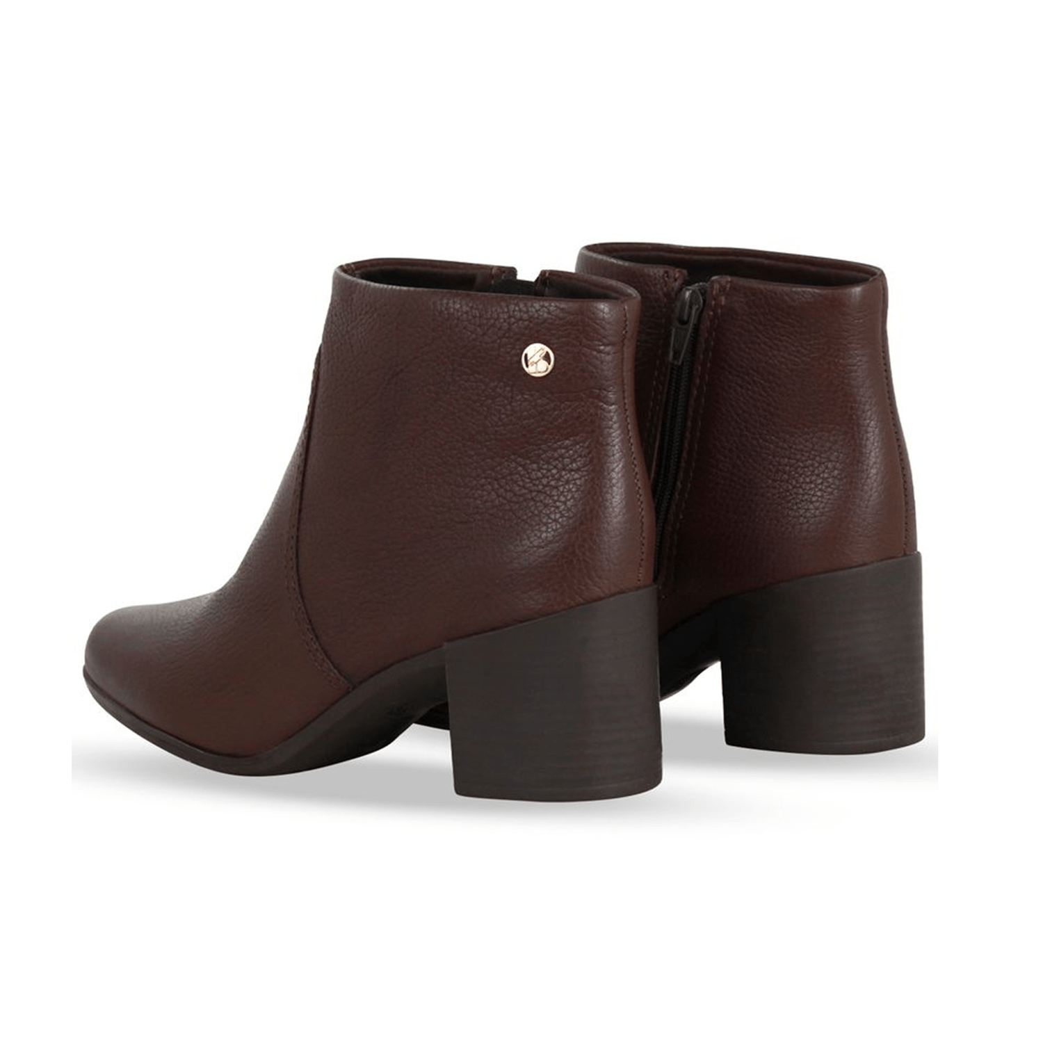 - Detalhes do modelo: Bota de couro, cano baixo, com zíper para facilitar o calce.