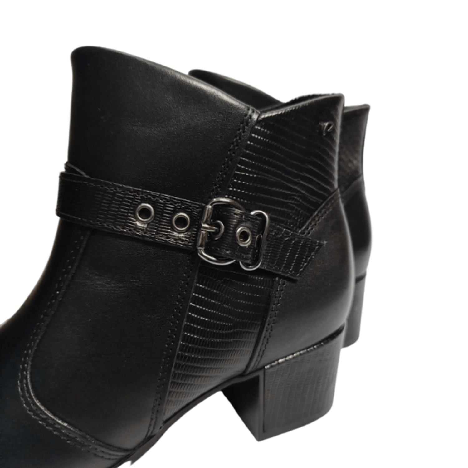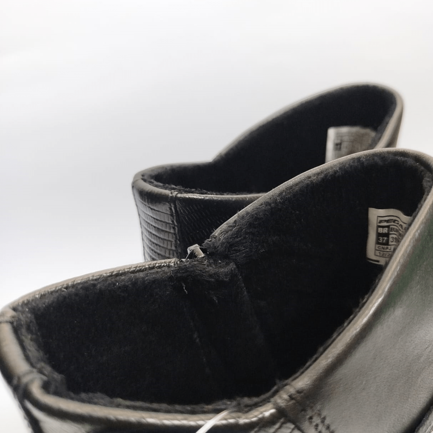 Fechamento com Zíper: O zíper na lateral interna facilita o calce e proporciona maior segurança e ajuste.