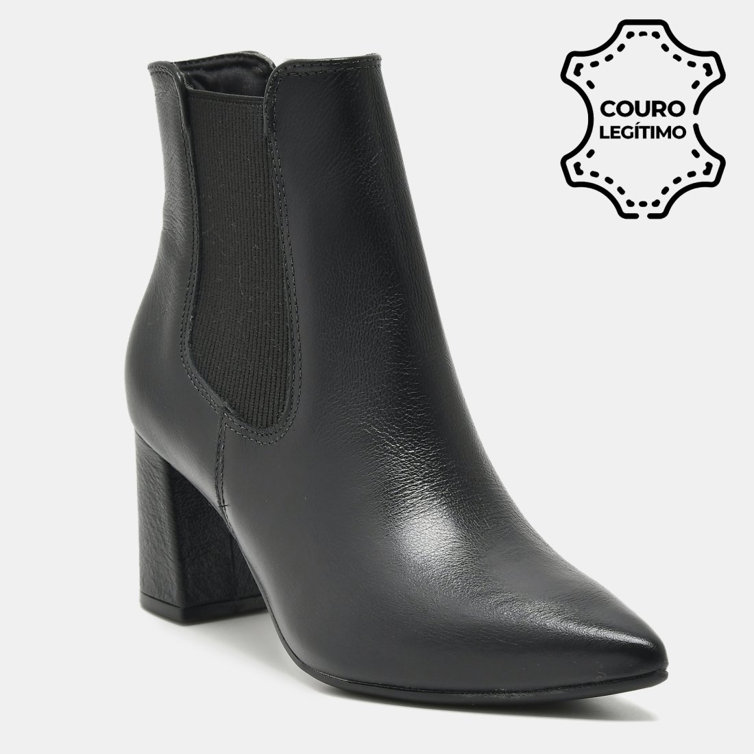 A bota Via Marte apresenta salto alto bloco e bico fino, no estilo chelsea este modelo traz cano curto com elásticos que se ajustam a perna. Ao ser combinada com diferentes peças de vestuário, a Bota Via Marte é capaz de elevar um visual básico para algo mais sofisticado e elegante. Sua confecção em couro a torna durável e resistente, sendo um investimento inteligente para aqueles que buscam um calçado capaz de perdurar por várias temporadas. Com a Bota Via Marte, você tem a garantia de um calçado confortável, elegante e versátil para complementar o seu look.