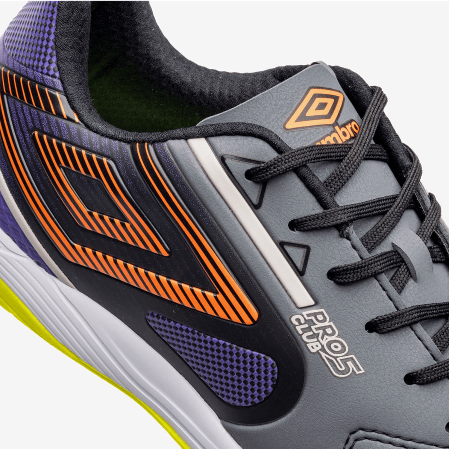 - Detalhes do modelo: A Chuteira Futsal Umbro Pro 5 Bump Club foi projetada para oferecer conforto e desempenho. O cabedal assimétrico em material laminado traz textura emborrachada e detalhes em verniz, garantindo durabilidade e precisão nos movimentos. A costura frontal reforça a estrutura, enquanto a tecnologia BUMP na palmilha proporciona amortecimento eficiente e retorno de energia, oferecendo mais estabilidade e conforto a cada jogada.
