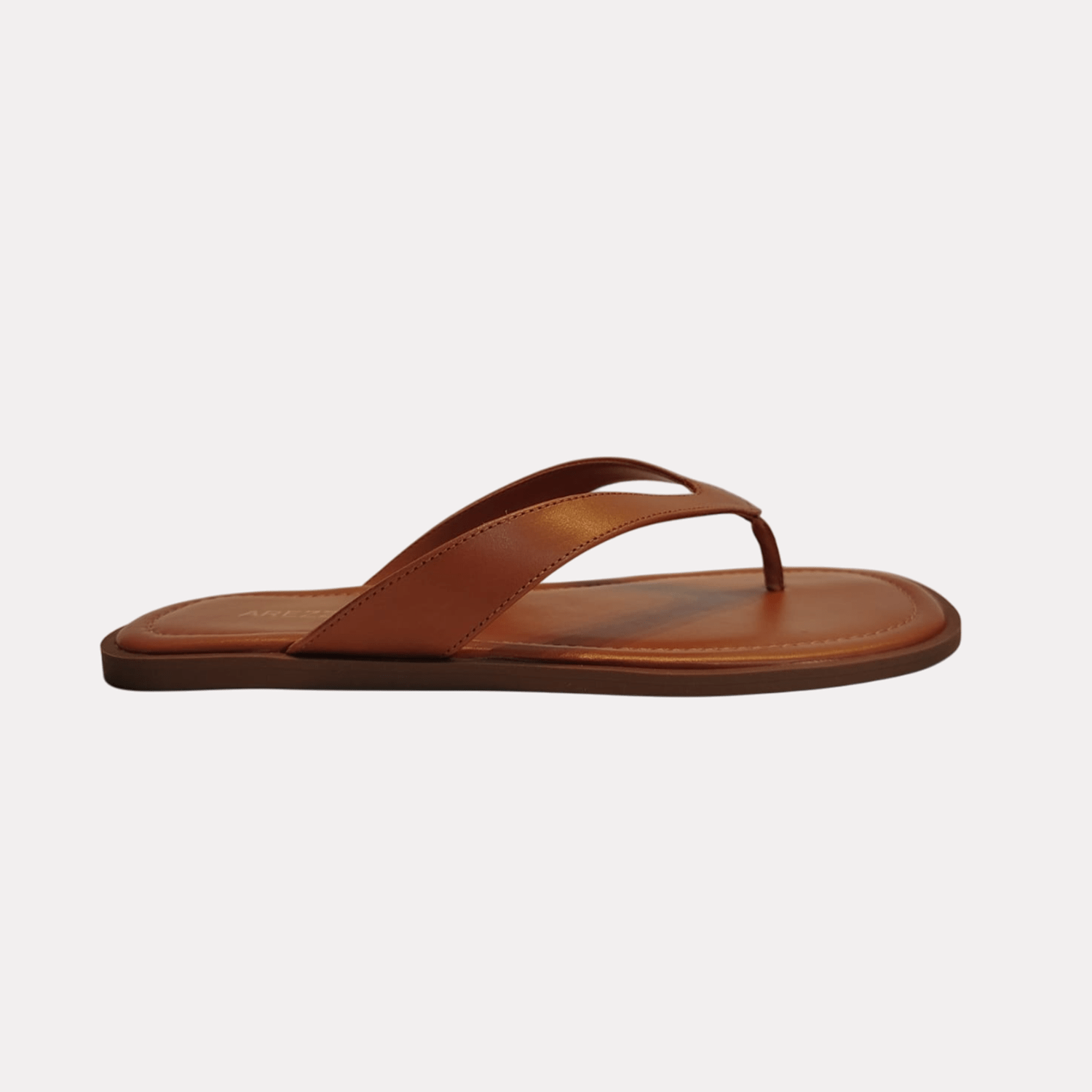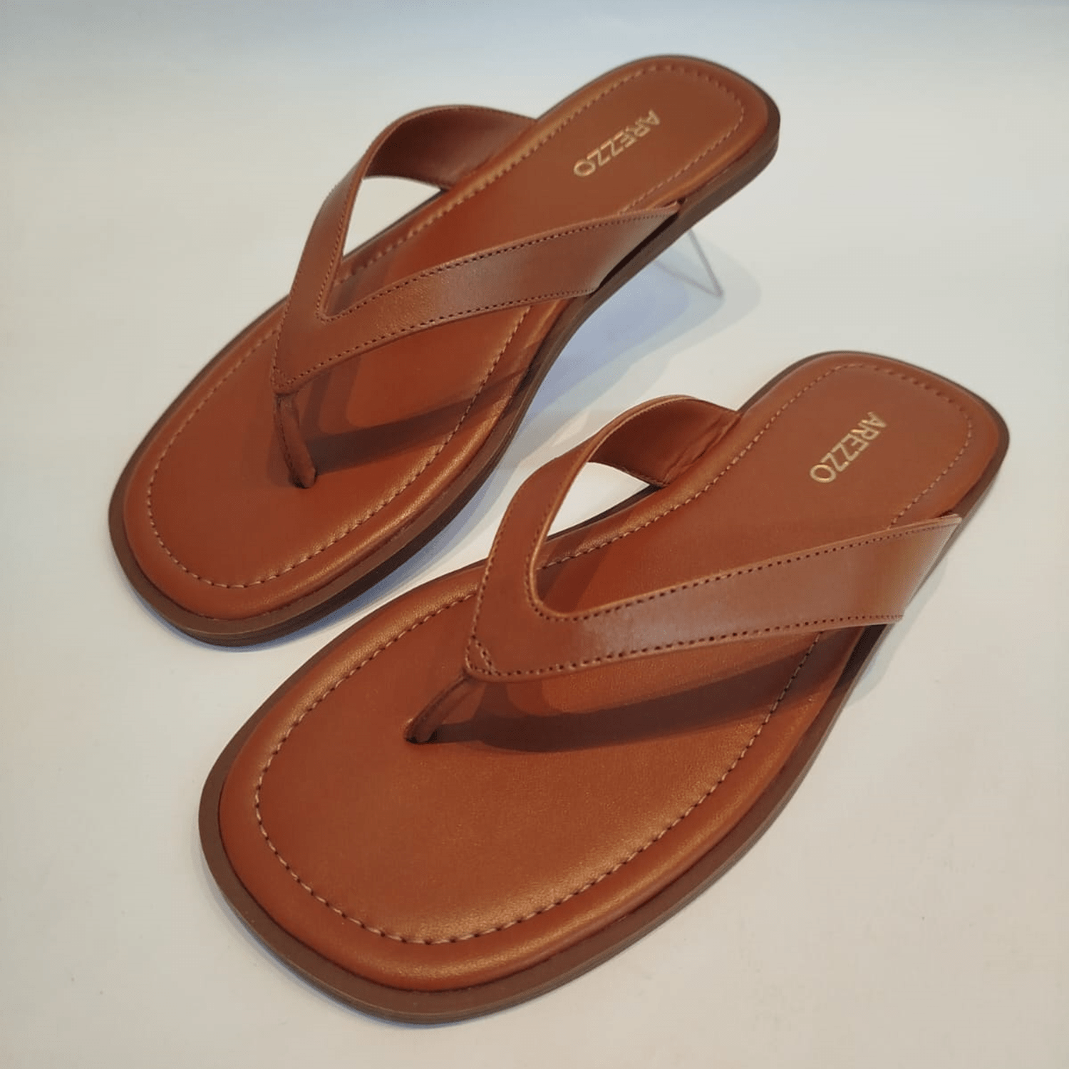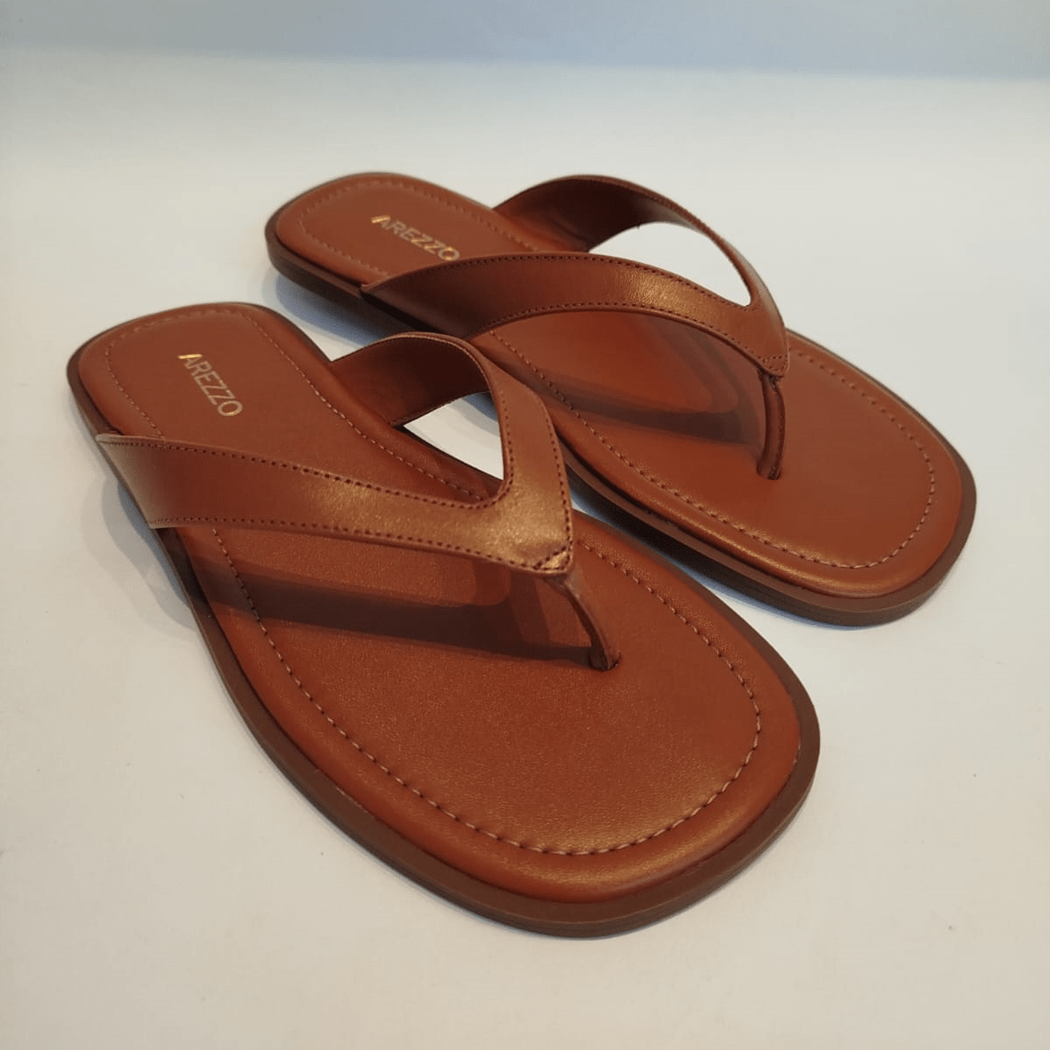 Sandália rasteirinha Arezzo na cor caramelo, ideal para o uso casual.