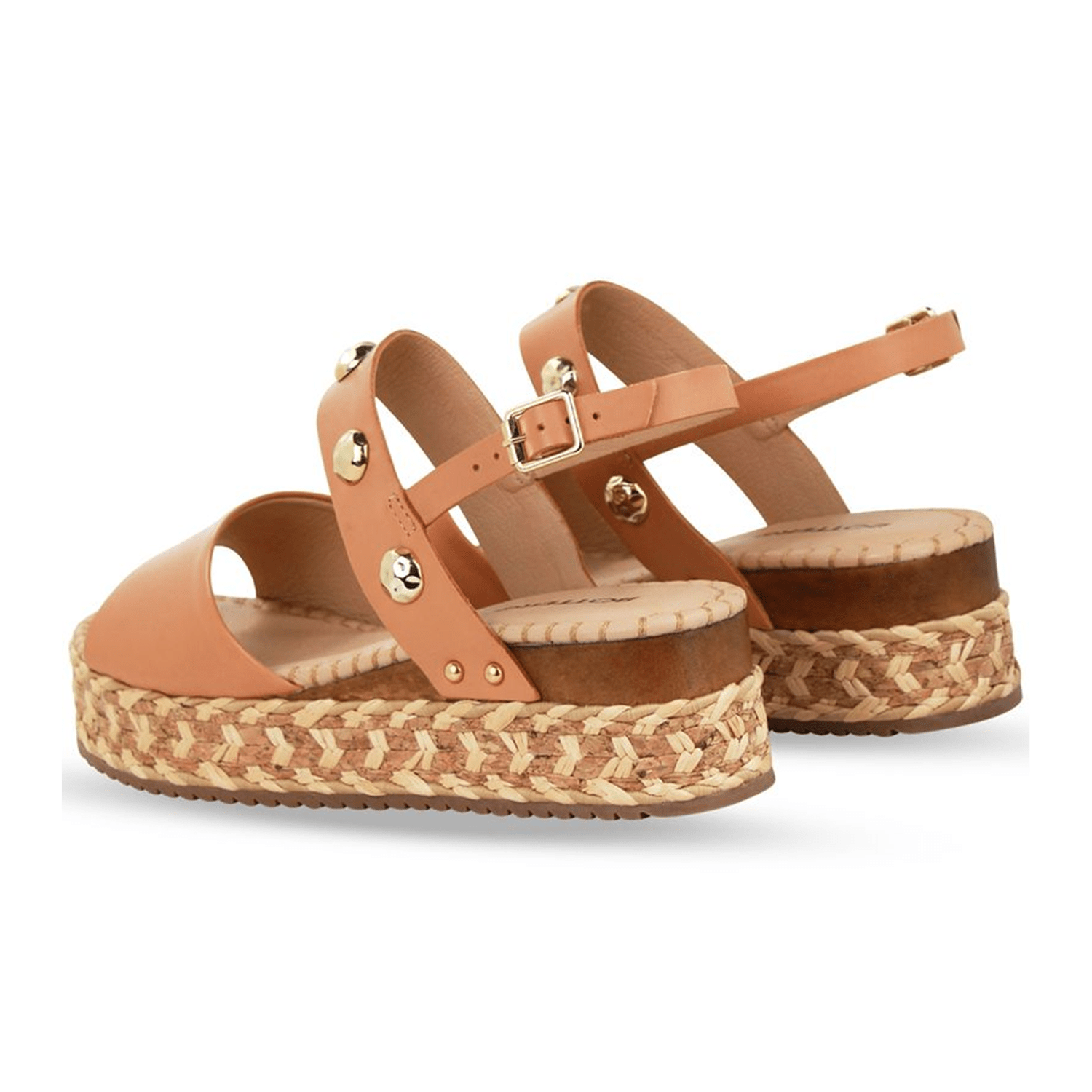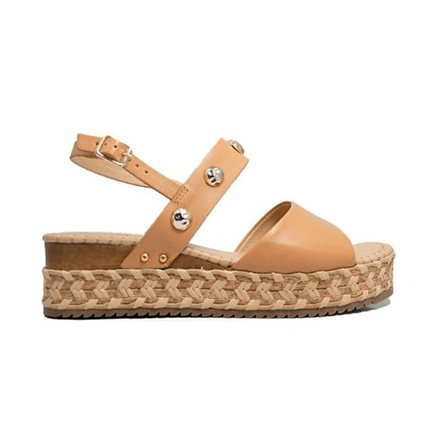 Sandália com cabedal em couro na cor com tira larga e detalhe de aplicação de studs metálicos que dão um toque moderno e sofisticado.