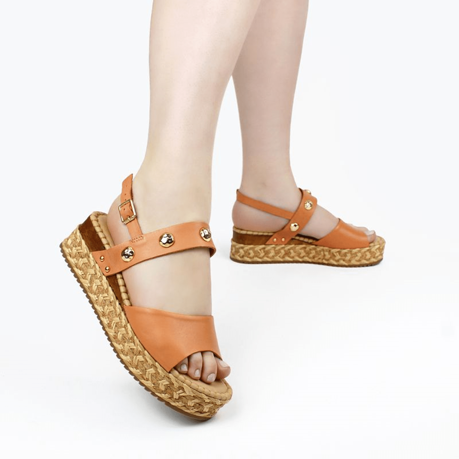 O solado plataforma é revestido em trama natural, com acabamento artesanal que garante charme extra à peça. Com palmilha macia e fechamento ajustável, é ideal para quem busca praticidade sem abrir mão da elegância.