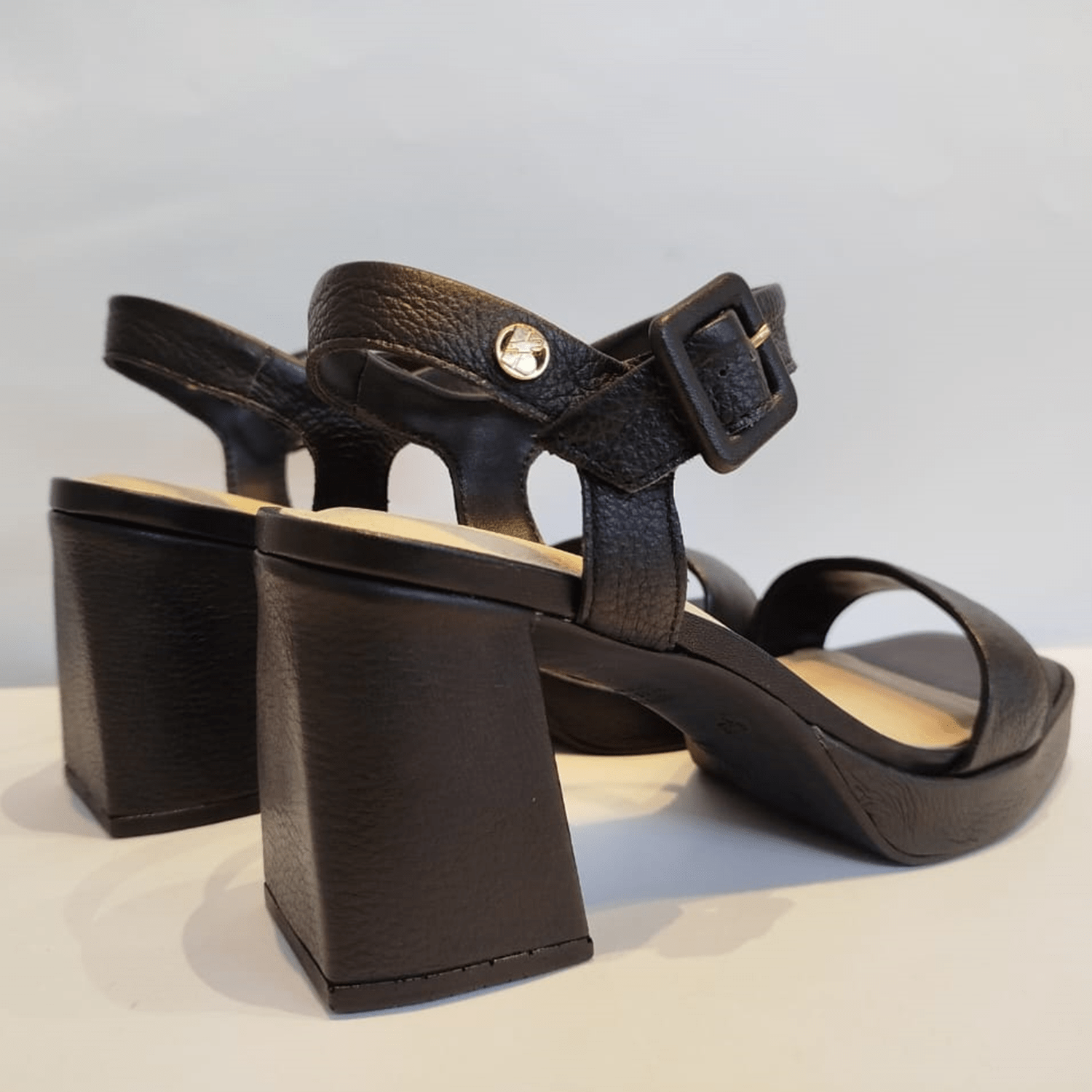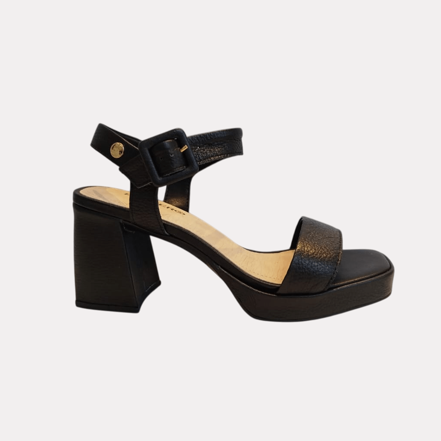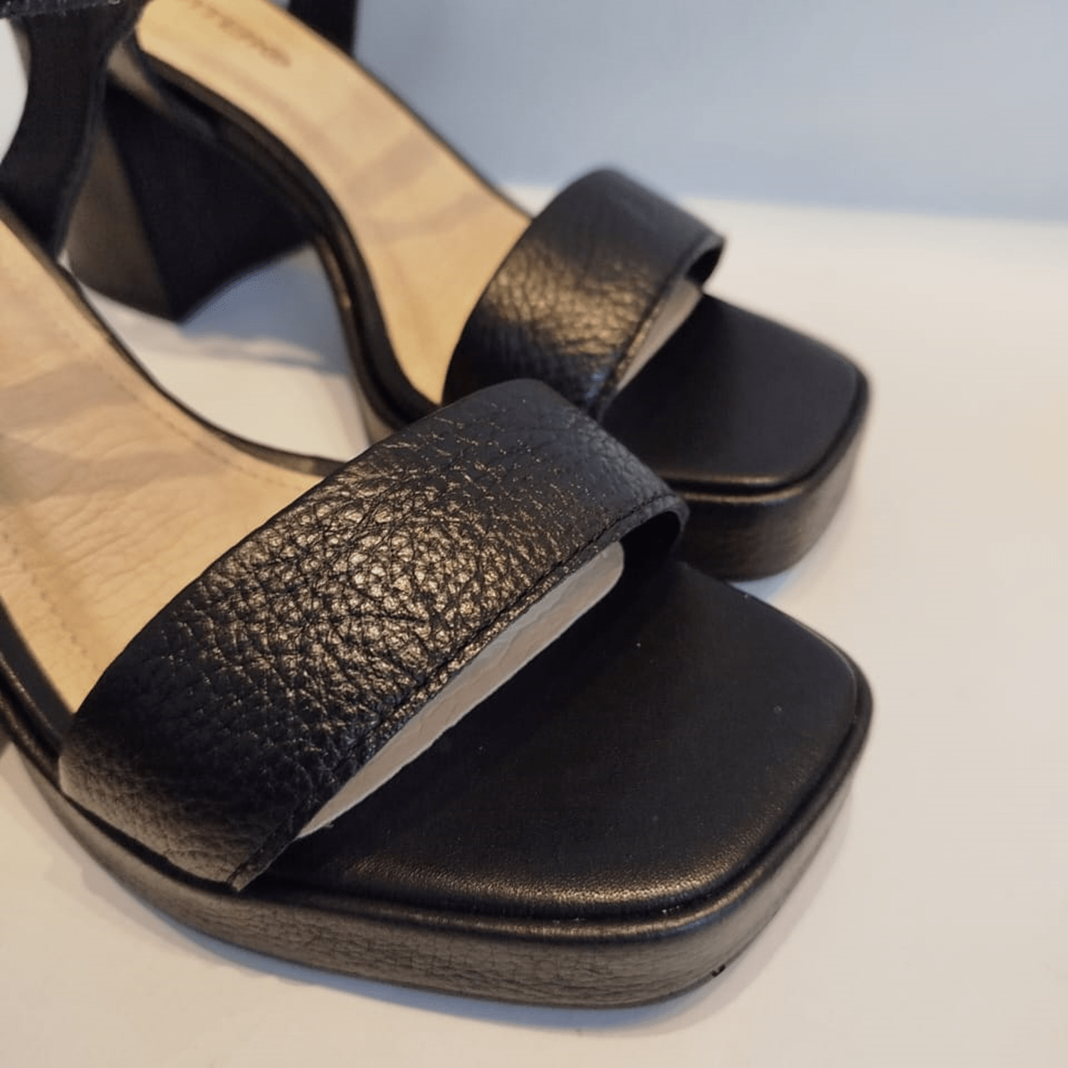 - Detalhes do modelo: Sandália de salto bloco e meia pata, possui uma única tira sobre a parte frontal do pé e tira no tornozelo com fecho de fivela ajustável. A sandália tem um acabamento em couro e é um modelo versátil que pode ser usado tanto em ocasiões casuais quanto em eventos mais arrumados.
