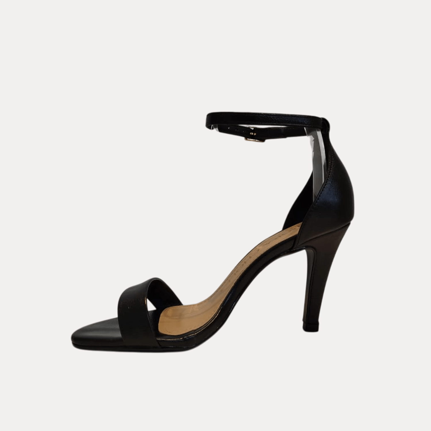 - Detalhes do modelo: Sandália salto fino, tira única na frente e fivela para ajuste no tornozelo. - Indicação de uso: Social
