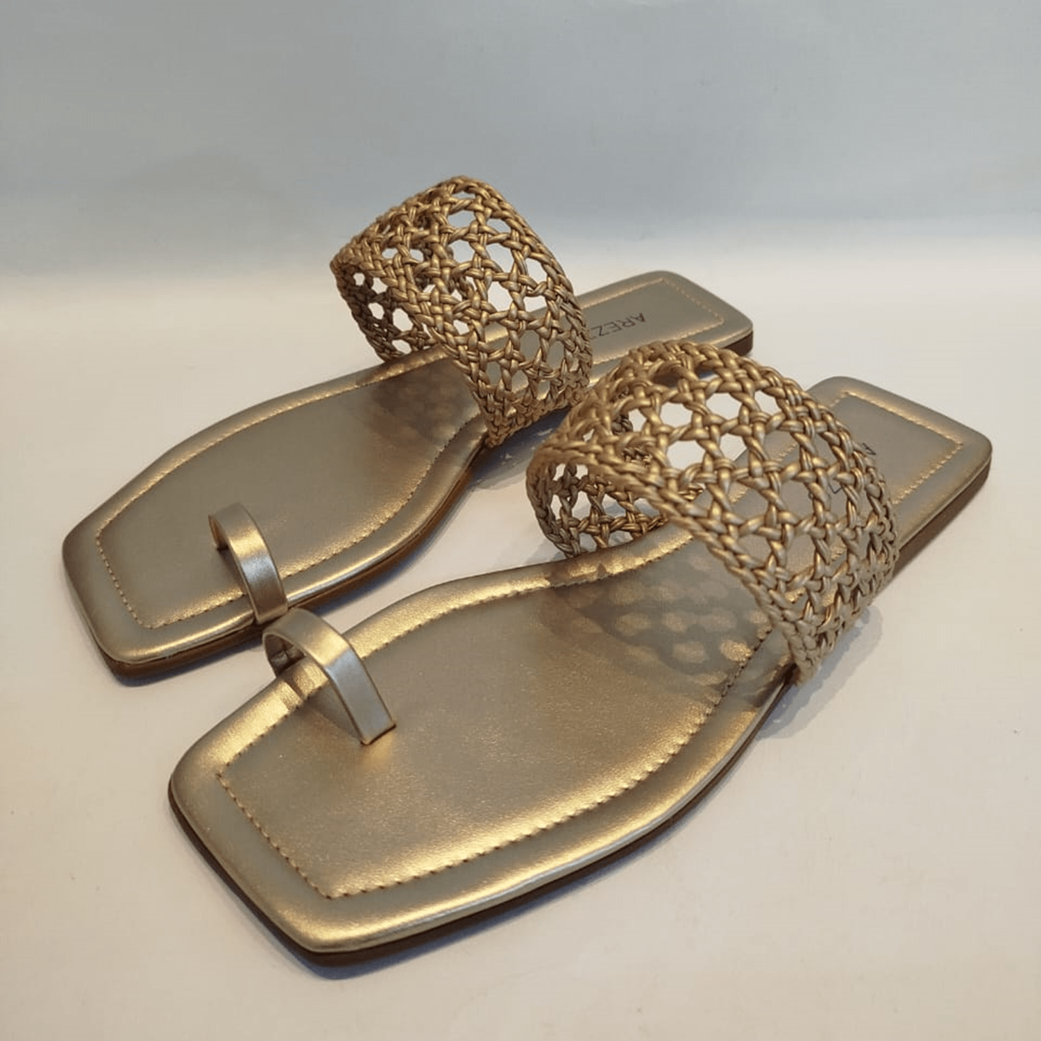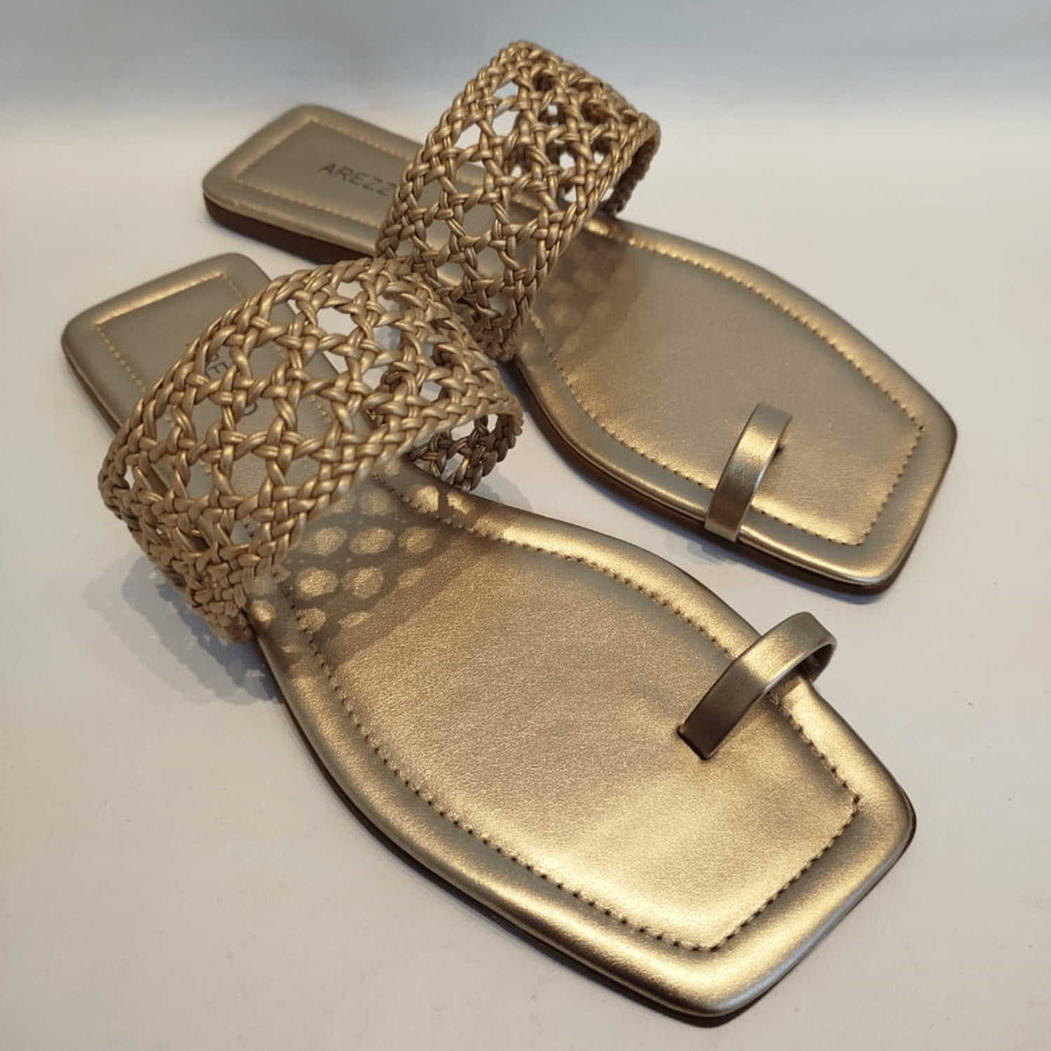 Sandália Feminina Rasteira Arezzo Ouro Light