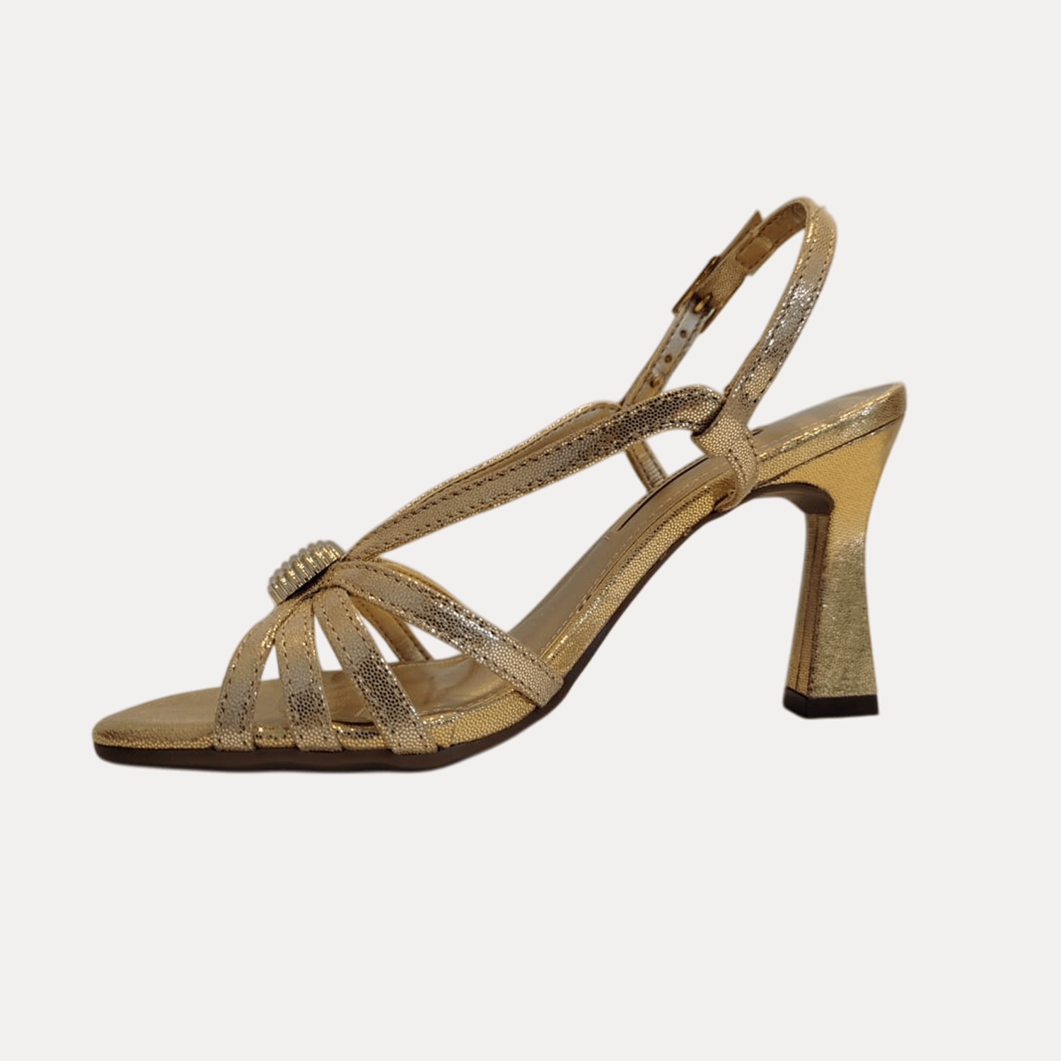 - Detalhes do modelo: Sandália feminina com salto alto garante um visual elegante e sofisticado. As tiras frontais se unem num enfeite metálico que se ligam ao calcanhar com fechamento por fivela para um ajuste delicado e seguro. Perfeita para eventos marcantes ou para adicionar um toque refinado ao look do dia a dia, essa sandália alia conforto, estilo e classe em cada detalhe.