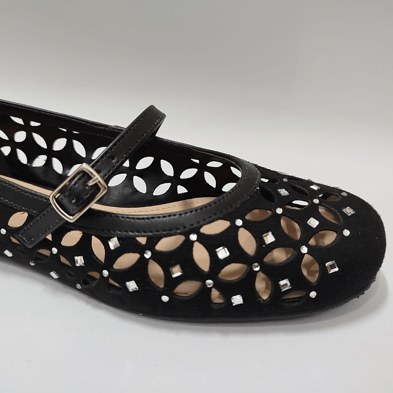 Sapatilha Feminina Debora Cholet Camurça Cristais Preto