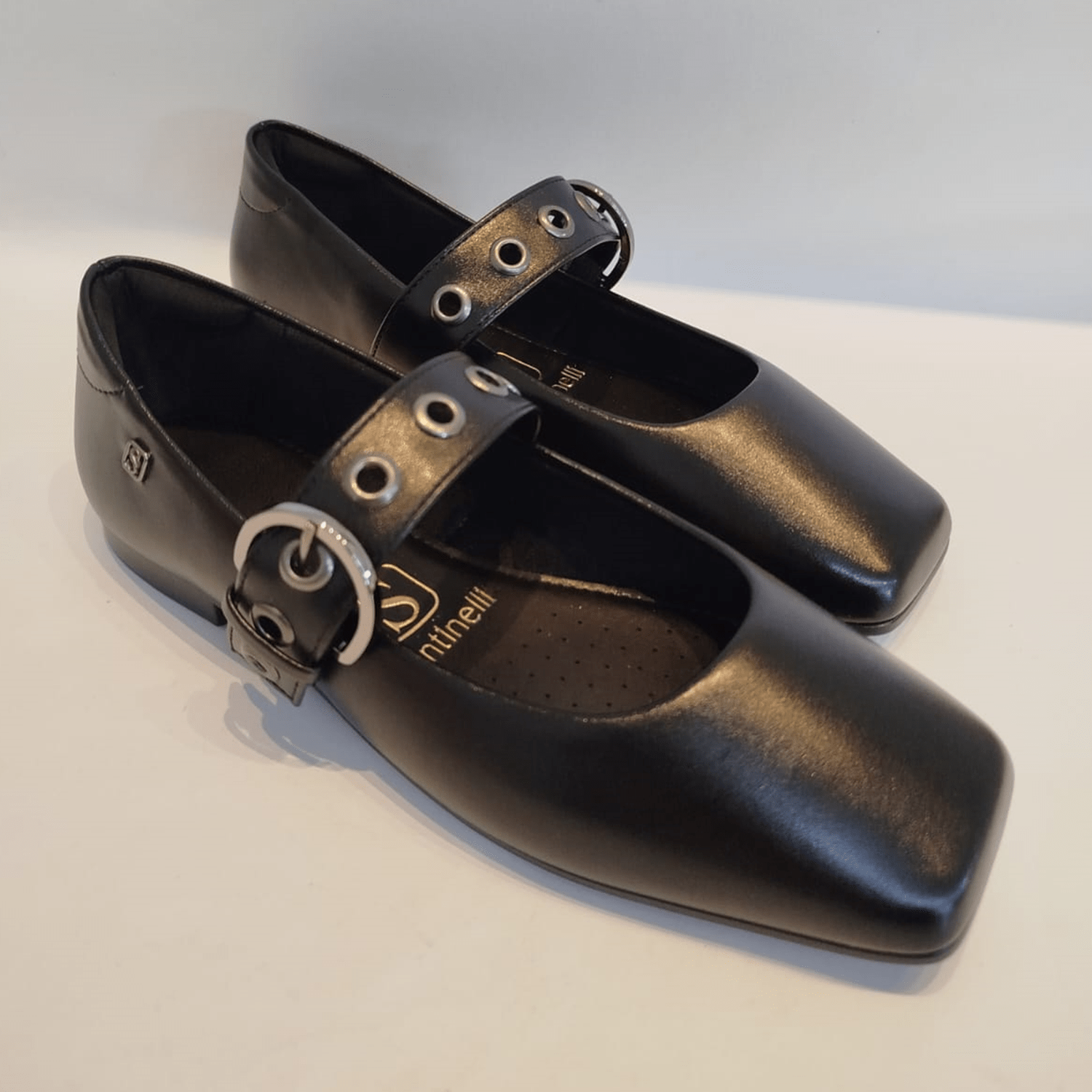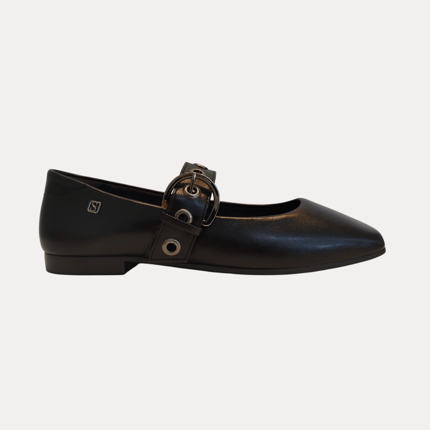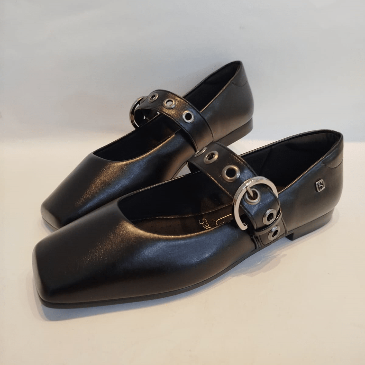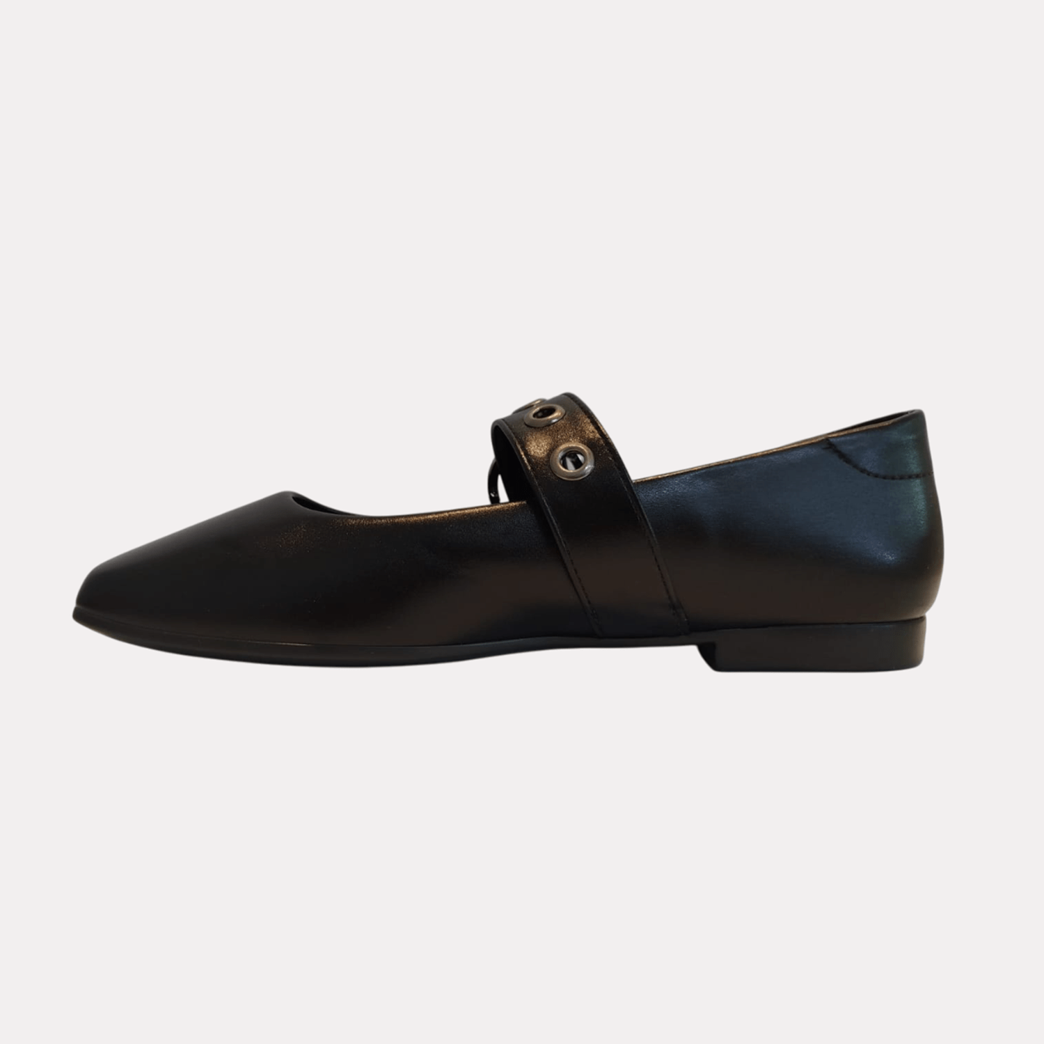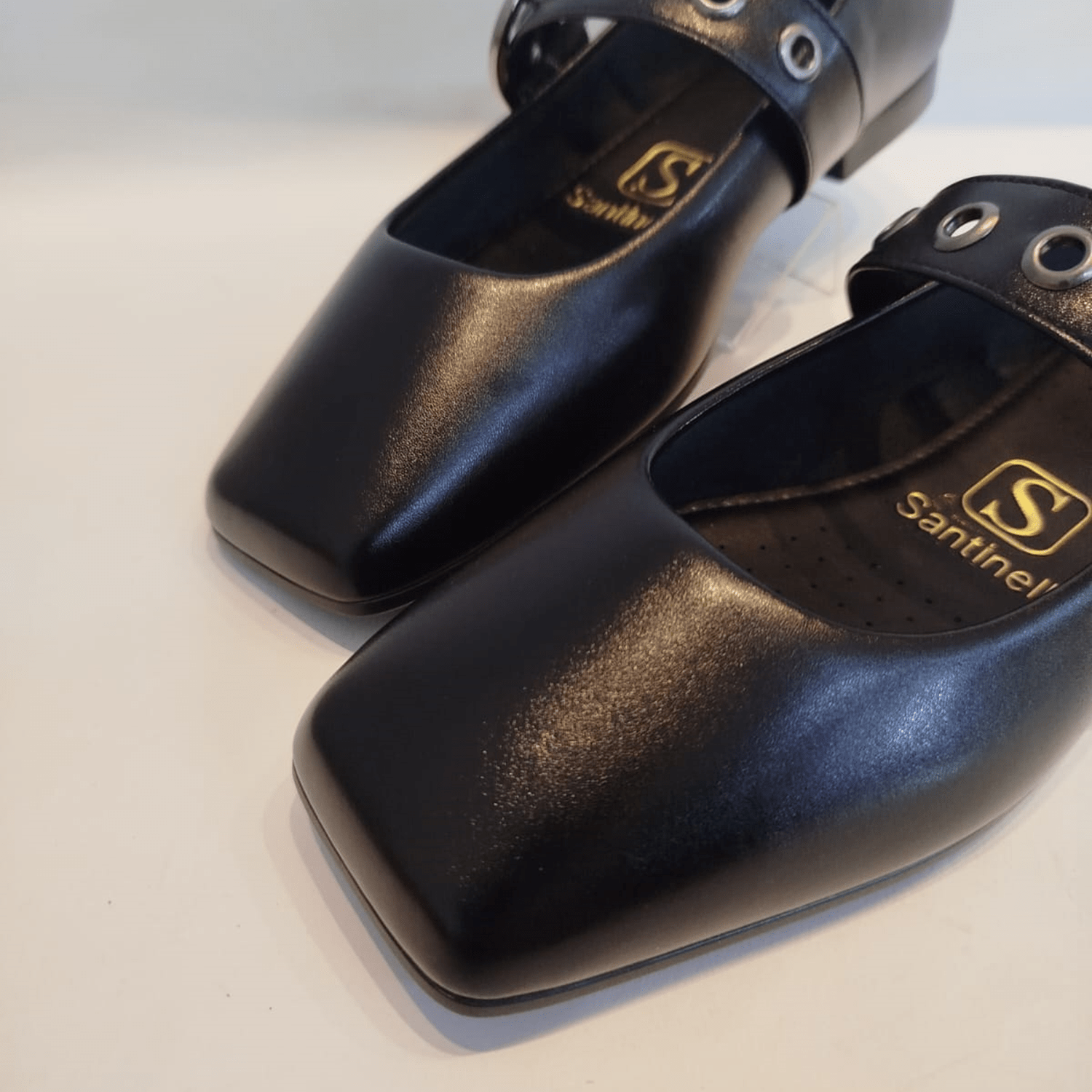 - Detalhes do modelo: Sapatilha feminina estilo Mary Jane ou Sapato Boneca. O calçado tem uma tira sobre o peito do pé, com fechamento por fivela e detalhes de ilhós. Bico quadrado, sem salto.
