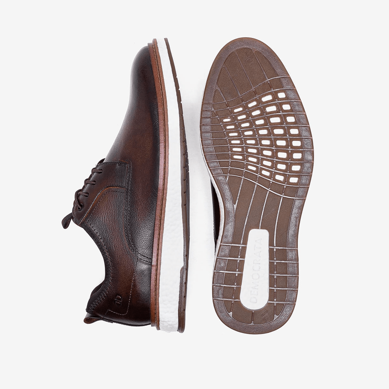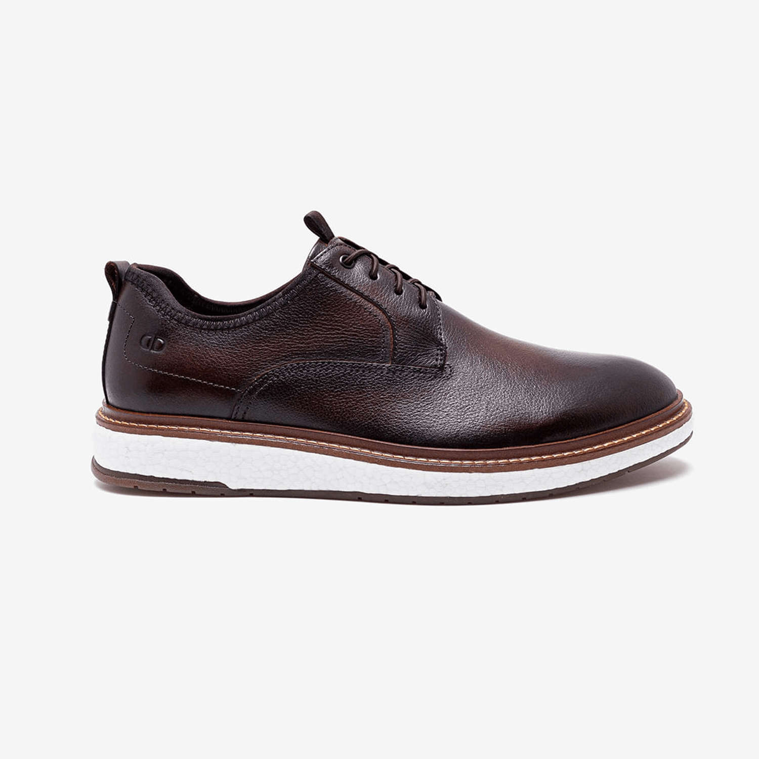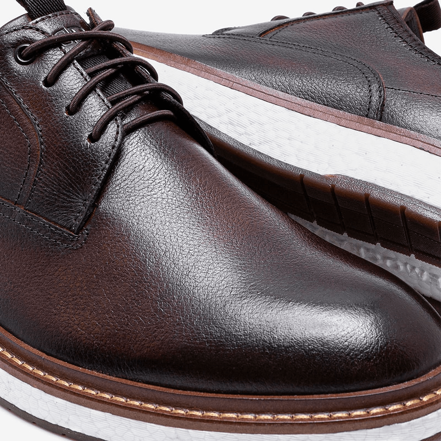 O Sapato Metropolitan Clark é confeccionado em couro, possui fechamento em cadarço de amarrar, detalhe de recorte na lateral e sola de micro expandido com palmilha fixa.