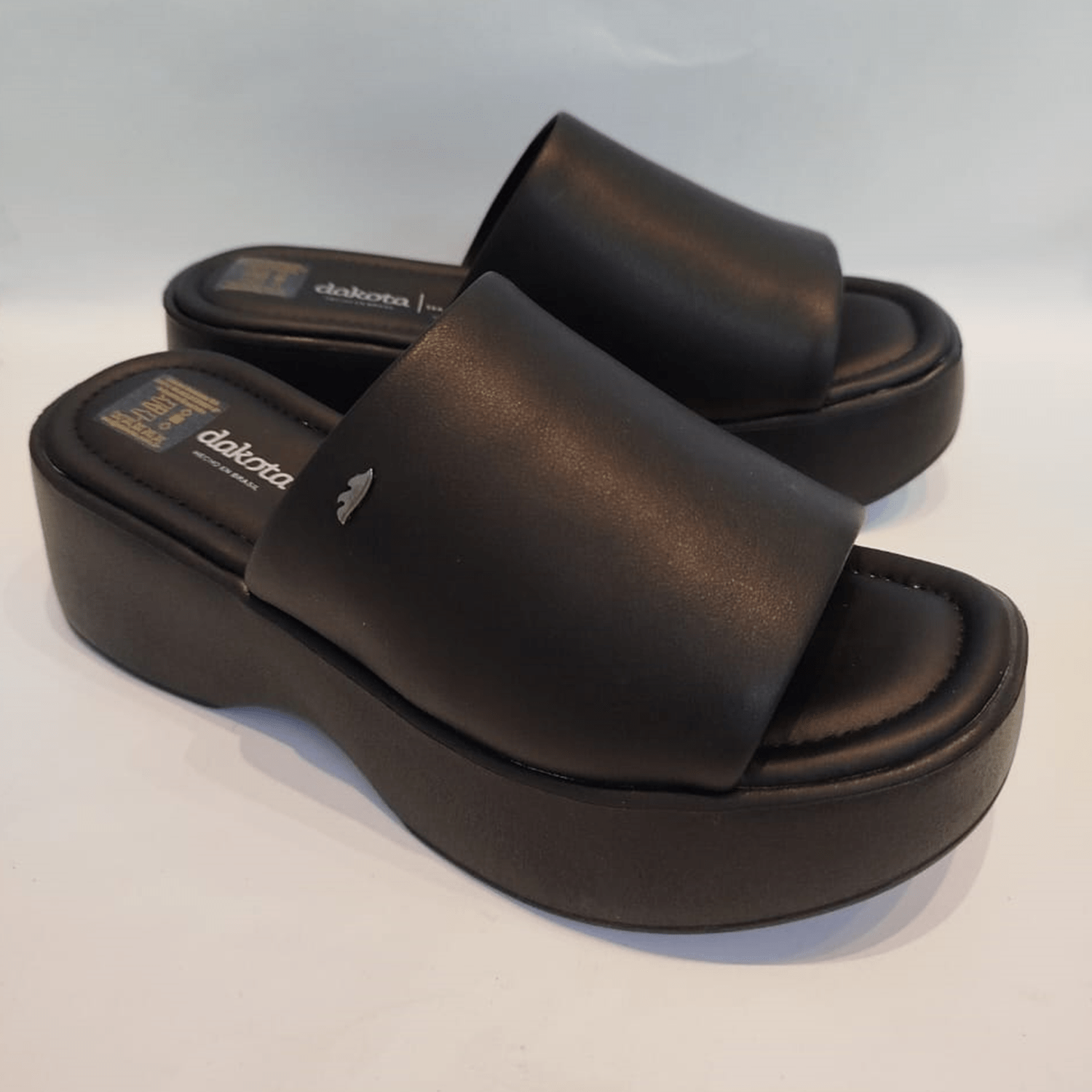 - Detalhes do modelo: Tamanco Dakota Anabela Preto é uma combinação ideal de moda e conforto, criando um visual deslumbrante para os dias mais quentes. Com um design monocolor e uma tira larga sobre o pé, este tamanco oferece um estilo moderno e elegante, complementado pelo pin metalizado da marca. A sola anabela garante conforto para uso prolongado.