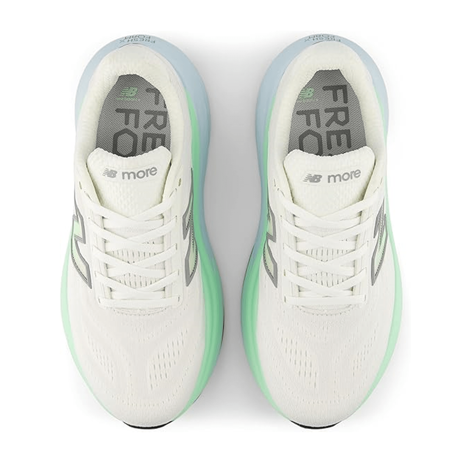 A entressola é a grande estrela, feita com uma das maiores e mais macias camadas da espuma Fresh Foam X já criadas pela New Balance. Isso proporciona uma sensação de pisada macia, quase como "pisar em travesseiros", e um excelente retorno de energia.