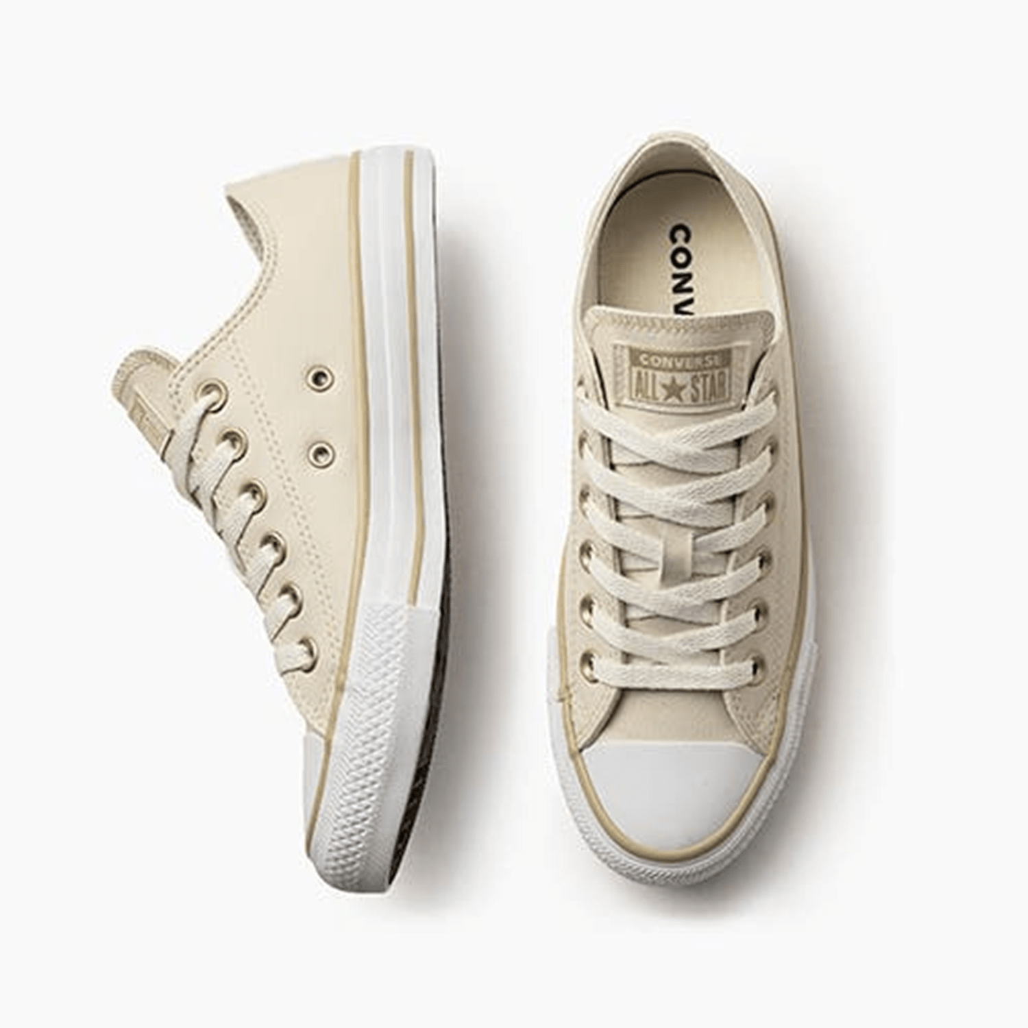 Em sua nova versão em tom creme, o tradicional Chuck Taylor All Star chega em material sintético. (Esta versão não é de tecido)